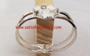 Material: Brass Color: Gold plated, silver plated, Rhodium plated, Rose gold plated, raw brass, Antique Brass color, Black nickel color Size: The outside diameter of plate is 26.7mm, inside diameter of the plate is 25mm, depth of the plate is 4.4mm, size of the bangle is 67x56.4mm, wire size of the bangle is 2.6mm MOQ: 500pcs/color Delivery time: one week