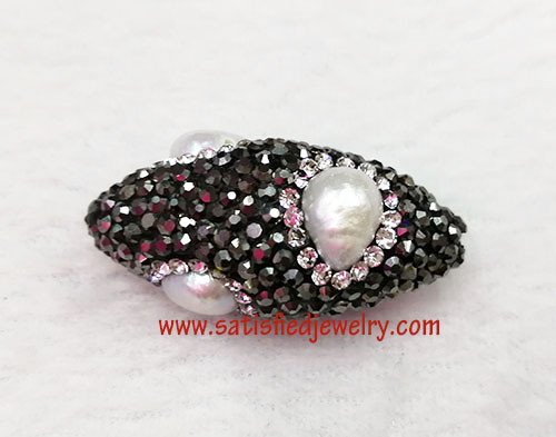 Material: Real pearl with crystal stone around Size: 32x16mm Pearl part size: 7-8mm Weight: 6.6g MOQ: 50PCS Delivery time: one week
