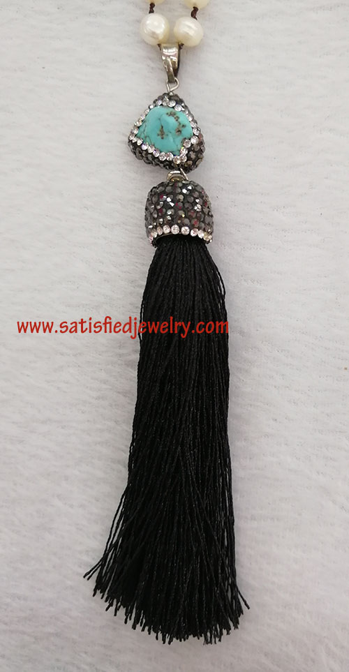 Material: Real shell with crystal stone around Turquoise beads with cyrstal beads Size: 15x16mm Tassel size: 75mm MOQ: 50PCS Delivery time: one week
