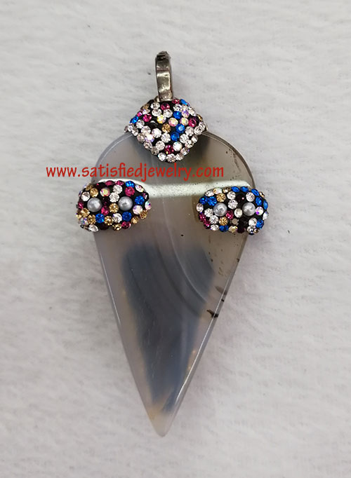 Material: Real gemstone with crystal stone around Size: 62x33.5mm Weight: 18.9g MOQ: 20PCS Delivery time: one week