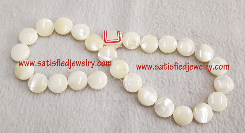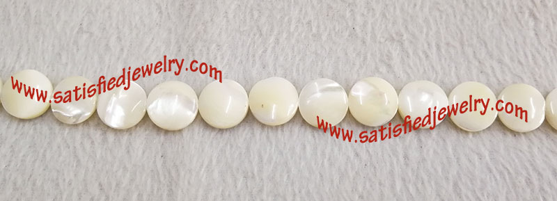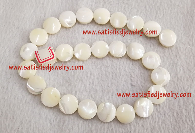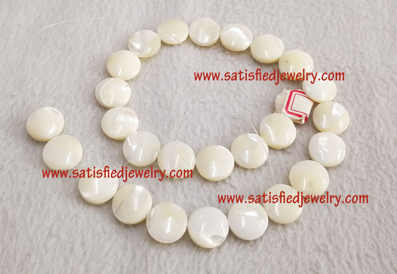 Material: Shell Color: white, yellow Size: 15mm MOQ: 50strs/color, one string with 27pcs Delivery time: one week