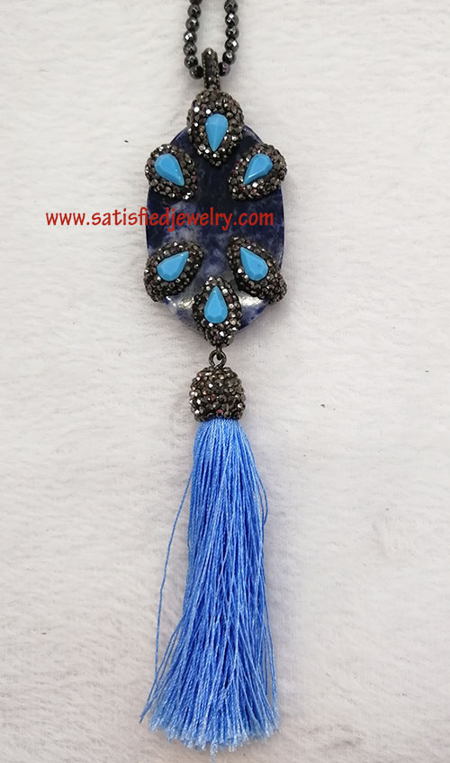Material: Real gemstone with crystal stone around Oval gemstone Size: 70x30mm Tassel size: 77mm Weight: 29.2g MOQ: 50PCS Delivery time: one week