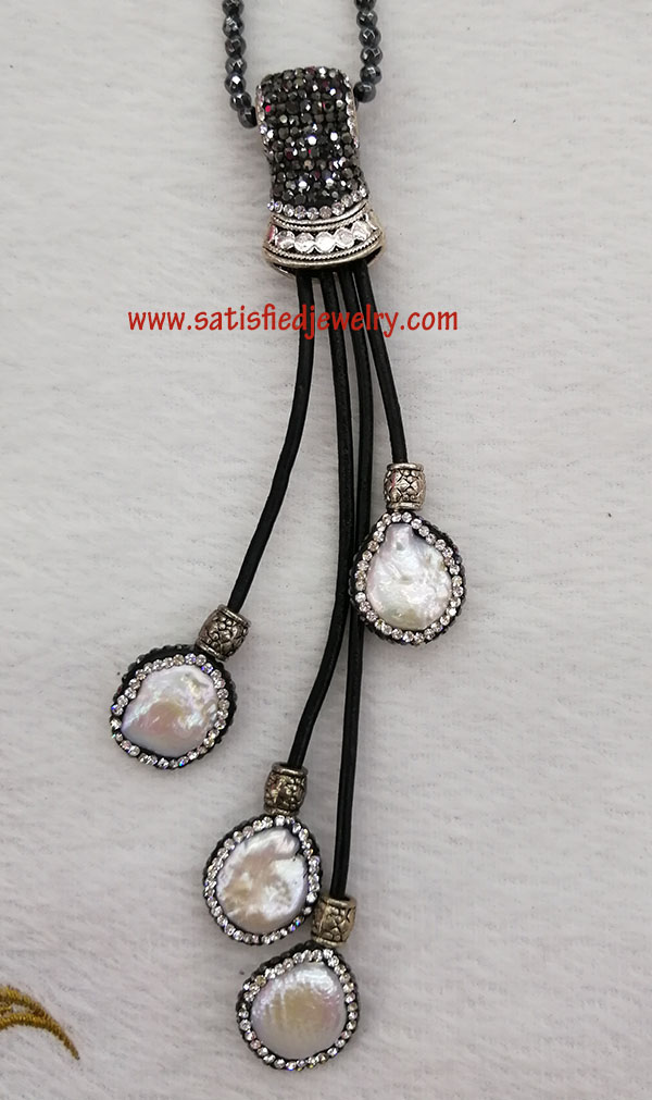 Material: Real leather and shell with crystal stone around Size of brass part: 28x17mm Shell beads size: 15mm - 16mm Weight: 21.2g MOQ: 50PCS Delivery time: one week