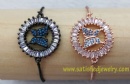 Material: Brass with real gold plated, with cubic zircon Color: Gold plated, Rose gold plated, Black color, Rhodium plated Size: 26x22mm Weight: 6.6g MOQ: 50PCS each color Delivery time: one week