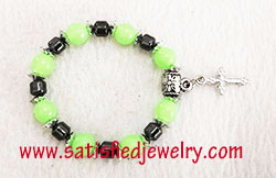 Material: Plastic + hematite + alloy pendant Size: hematite bead size is 8.2x8mm, plastic rondell size is 6x3mm, blue plastic beads size is 7.6mm, the cross pendant size is 19.4x10.3mm Colors: Any color can make MOQ: 2000pcs/color Delivery time: 10days