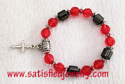 Material: Plastic + hematite + alloy pendant Size: hematite bead size is 8.2x8mm, plastic rondell size is 6x3mm, red plastic beads size is 8mm, the cross pendant size is 19.4x10.3mm Colors: Any color can make MOQ: 2000pcs/color Delivery time: 10days