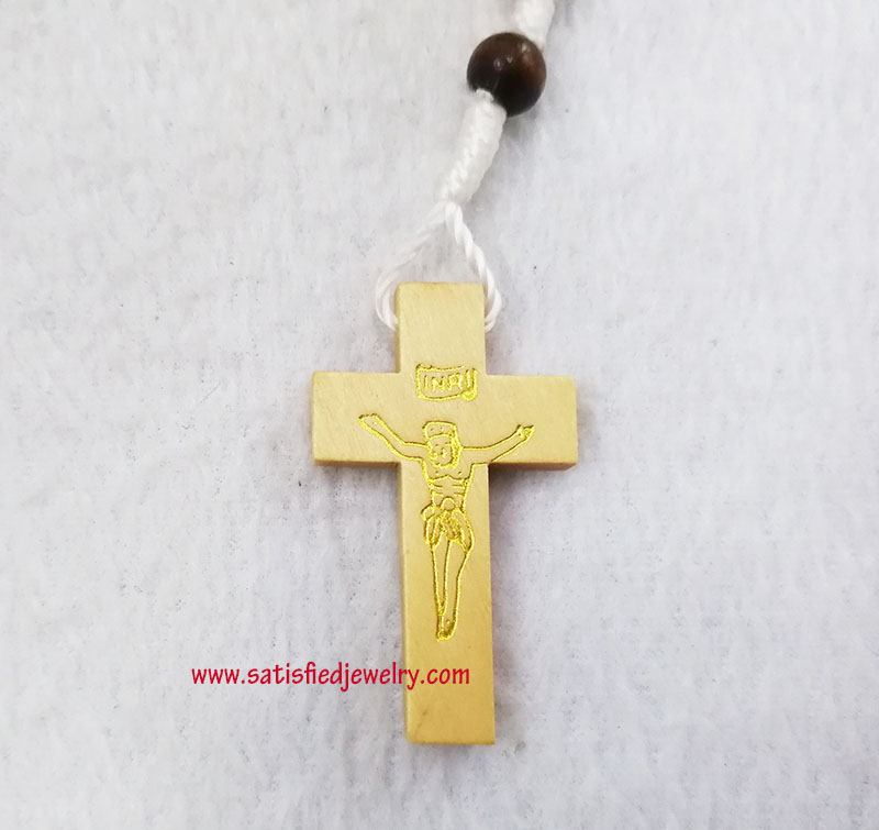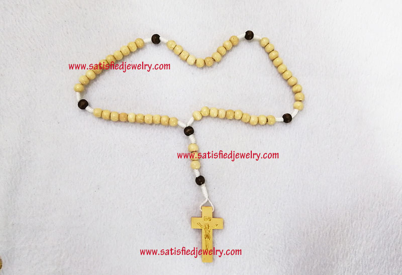 Material: Wood Size: 8mm wood beads, Wood cross size is 41.6x24x4.6mm MOQ: 2000pcs Delivery time: 10days