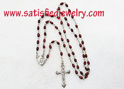 Material: plastic beads + iron rings + Alloy pendant Size: 6x4mm wood beads, middle alloy pendant size is 17.7x13mm, the below cross pendanty size is 40.4x24.6mm, total length is 50cm, only the chain length is 71cm MOQ: 2000pcs/color Delivery time: 10days