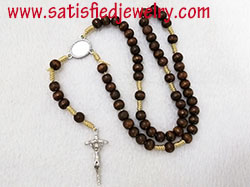 Material: Wood + alloy pendant Size: 8mm wood beads, middle oval alloy pendant size is 20.8x17x1.5mm, alloy cross size is 40x17mm, total length is 36cm, only the chain length is 46cm MOQ: 2000pcs/color Delivery time: 10days