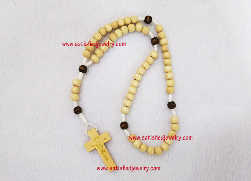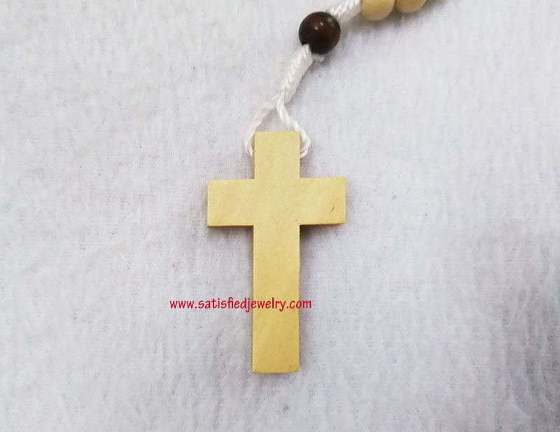 Material: Wood Size: 8mm wood beads, Wood cross size is 41.6x24x4.6mm MOQ: 2000pcs Delivery time: 10days