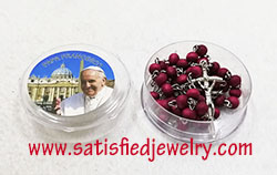 Material: plastic beads + iron rings + Alloy pendant Size: 7.2x5.7mm wood beads, middle alloy pendant size is 20x14.8mm, the below cross pendanty size is 41.2x17.6mm , total length is 48.5cm, only the chain length is 67cm, the box diameter is 58.6mm, the depth of the box is 24mm MOQ: 2000sets/color Delivery time: 10days