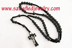 Material: plastic beads + wood cross Size: 8mm plastic beads with flowers on two sides, the below wood cross pendant size is 49x24x4.9mm, total length is 51cm, only the chain length is 66cm MOQ: 2000pcs/color Delivery time: 10days