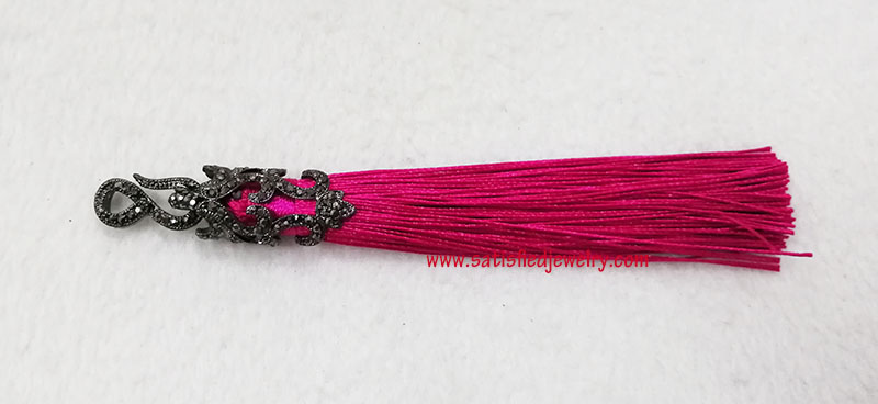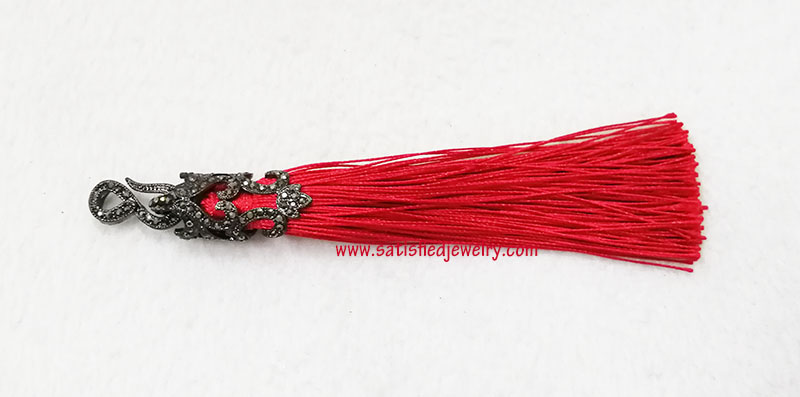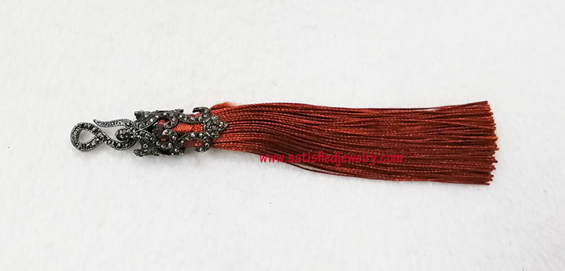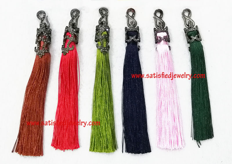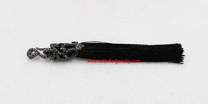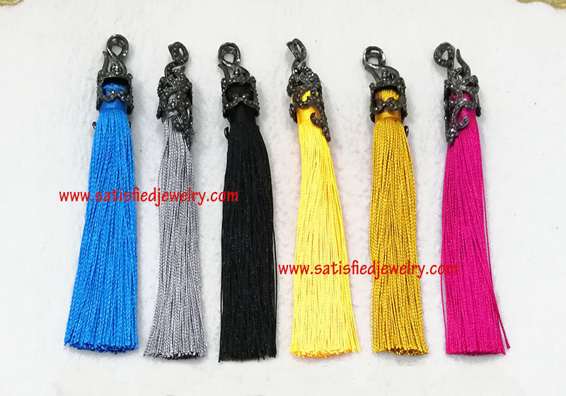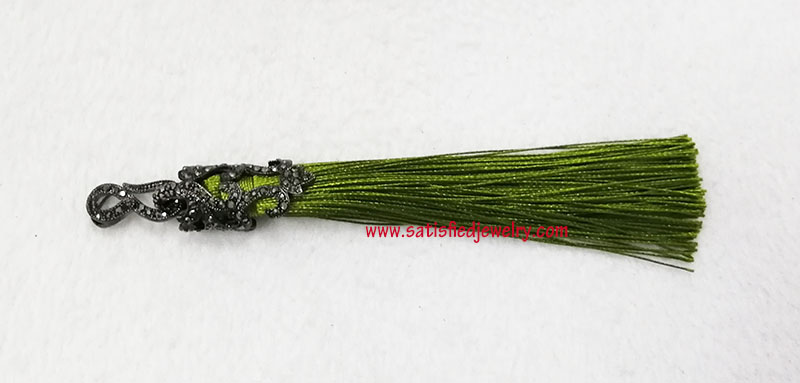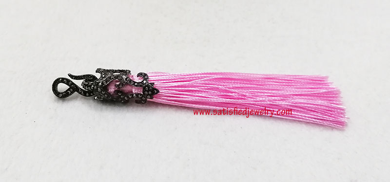Material: Tassel with stones Size: total length is 150mm, "S" hook size is 23.3x11.5mm, stone part size is 39.8x16.5mm, tassel part size is 120mm. with 200pcs of small lines MOQ: 200pcs/color Delivery time: 10days