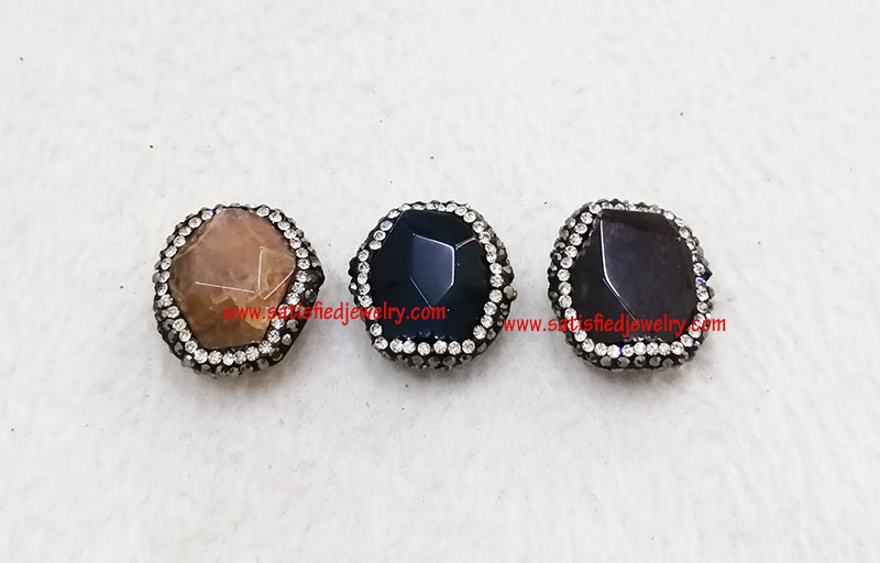 Material: Gemstones + stones Size: 22.7x21.8mm, 12mm depth MOQ: 100PCS/color Delivery time: one week
