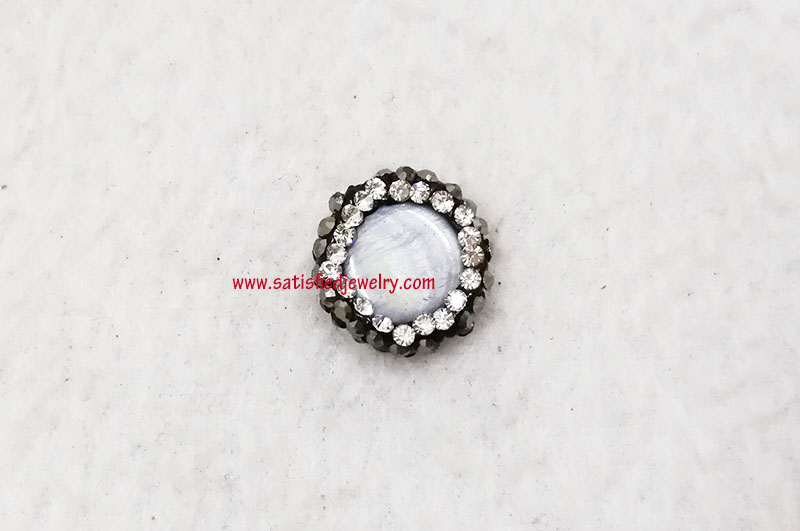 Material: Shell + stones Size: 14mm, 4.5mm depth MOQ: 100PCS/color Delivery time: one week