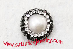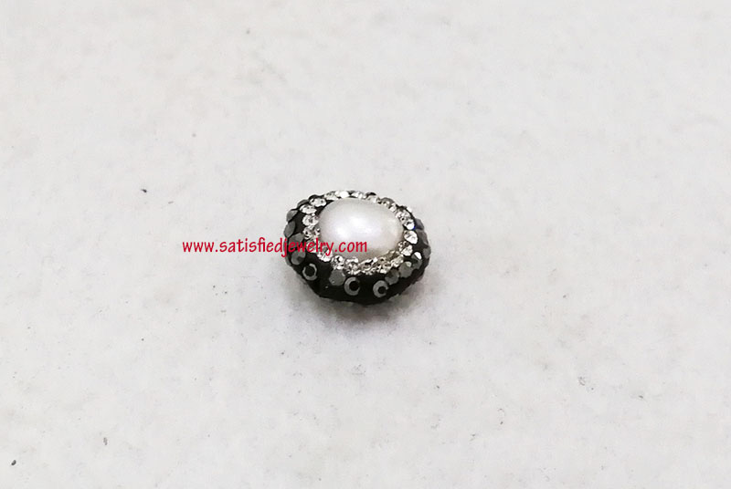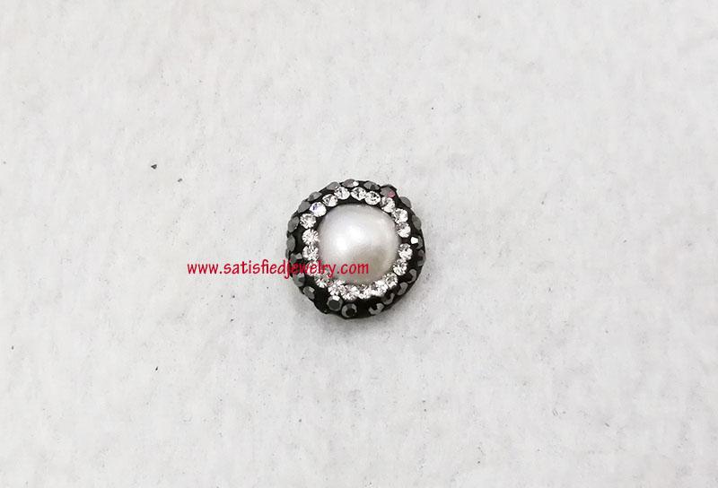 Material: Pearl + stones, two sides same Size: 14mm, 6.8mm depth MOQ: 100PCS/color Delivery time: one week
