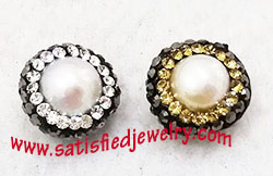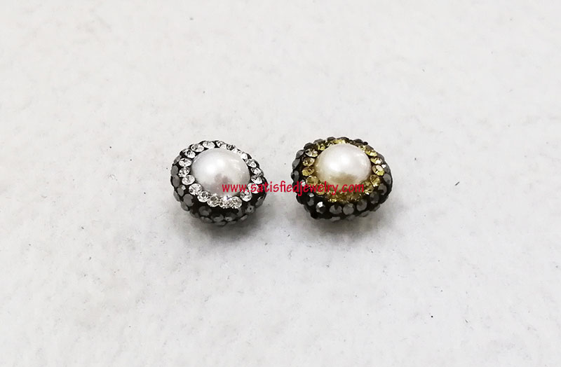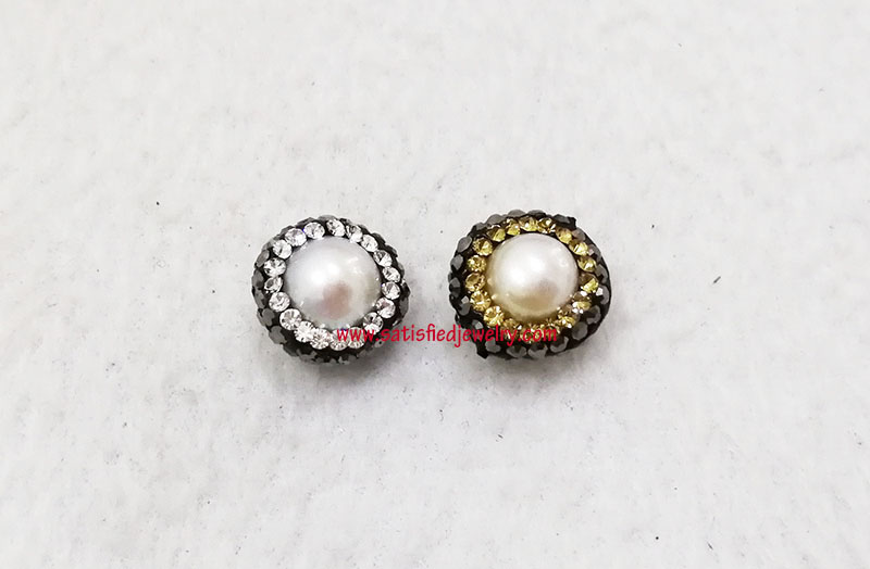 Material: Pearl + stones, two sides same Size: 13mm, 9.5mm depth MOQ: 100PCS/color Delivery time: one week