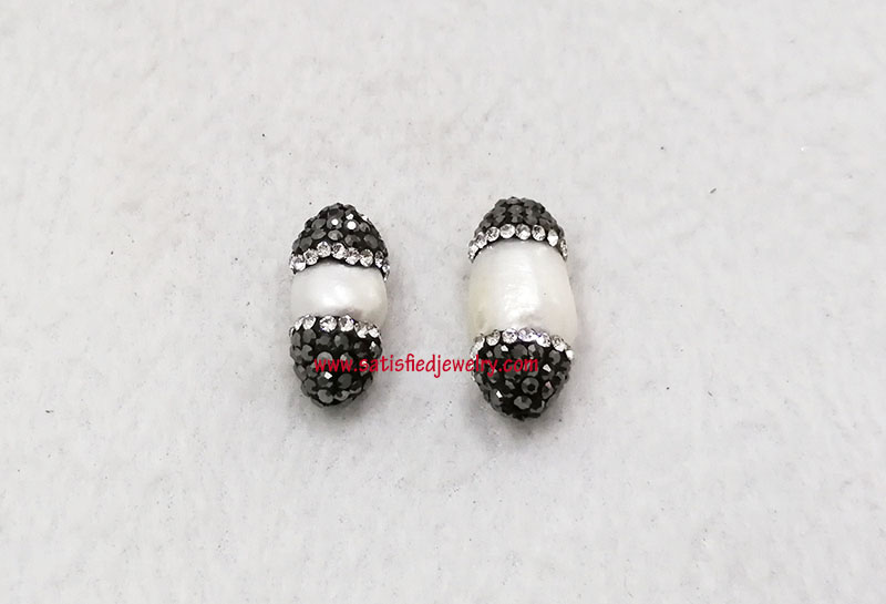 Material: Pearl + stones Size: 21-24mm length, 10mm width MOQ: 100PCS/color Delivery time: one week