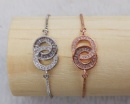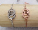 Material: Brass with real gold plated, with cubic zircon Color: Gold plated, Rose gold plated, Black color, Rhodium plated Size: 22.3x11.8mm Weight: 3.5g MOQ: 50PCS each color Delivery time: one week