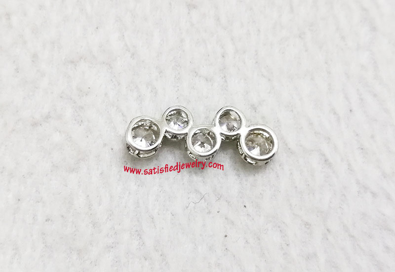 Material: Brass + Cubic Zircon Stone Color: Gold plated, Silver plated, Rhodium plated, Rose gold plated Size: Total size is 24x8.8mm, 5.2mm depth, with 5pcs of 3.5mm cubic zircon round stone MOQ: 200pcs/color Delivery time: one week