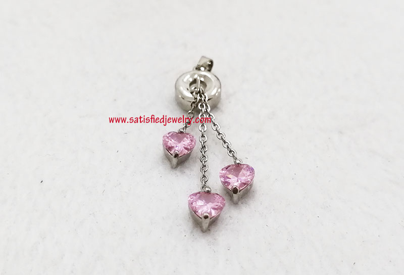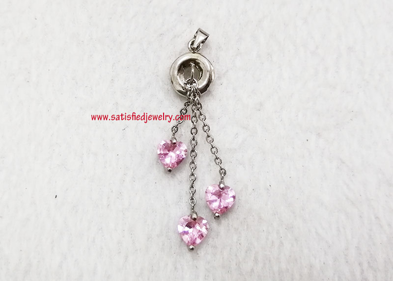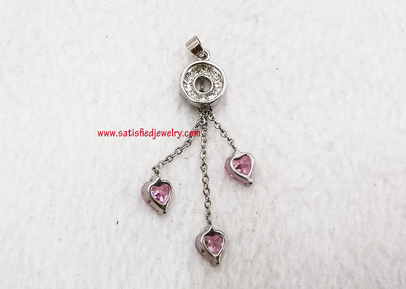 Material: Brass + Cubic Zircon Stone Color: Gold plated, Silver plated, Rhodium plated, Rose gold plated Size: Up part circle size is 14.5x11mm, 4.2mm thinkness, with 3pcs of 7mm cubic zircon heart stone and with 2.0x1.5x0.3mm brass chain MOQ: 200pcs/color Delivery time: one week