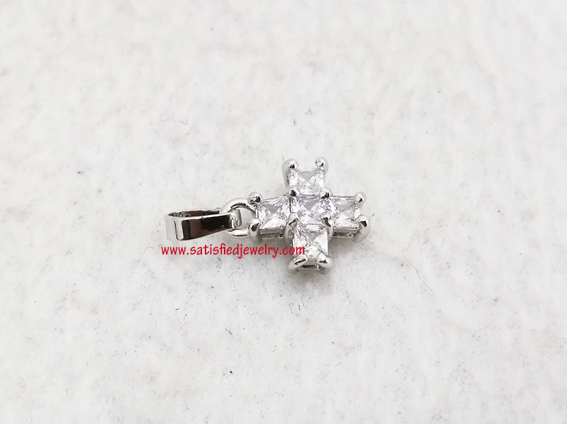 Material: Brass + Cubic Zircon Stone Color: Gold plated, Silver plated, Rhodium plated, Rose gold plated Size: Total size is 13.4x10.9mm, 4.5mm thickness, with 5pcs of 3mm cubic zircon square stone MOQ: 200pcs/color Delivery time: one week