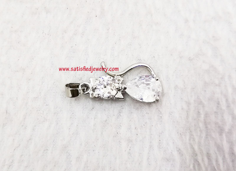Material: Brass + Cubic Zircon Stone Color: Gold plated, Silver plated, Rhodium plated, Rose gold plated Size: Total size is 22x11.3mm, 4.9mm thickness, with 6mm cubic zircon round stone and 7x10mm cubic zircon drop stone MOQ: 200pcs/color Delivery time: one week
