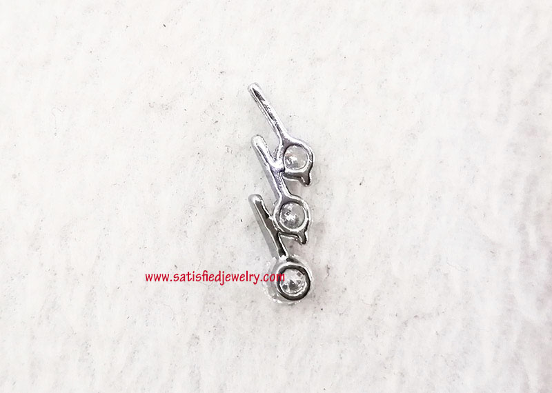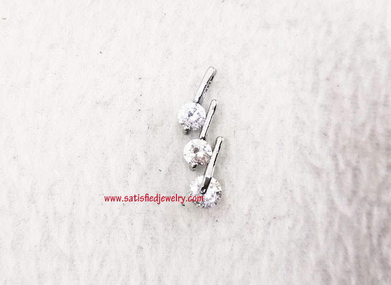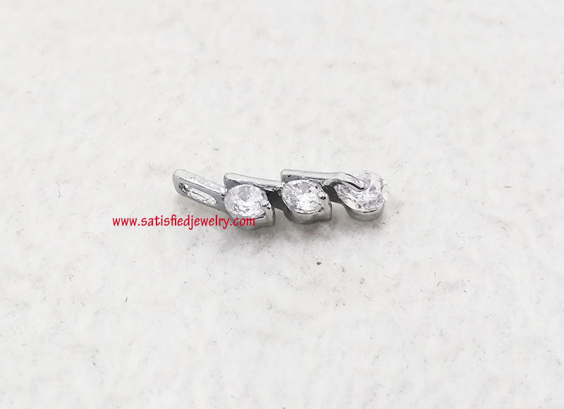 Material: Brass + Cubic Zircon Stone Color: Gold plated, Silver plated, Rhodium plated, Rose gold plated Size: Total size is 21.3x6.8mm, 4.3mm thickness, with 3pcs of 4.0mm cubic zircon round stone MOQ: 200pcs/color Delivery time: one week