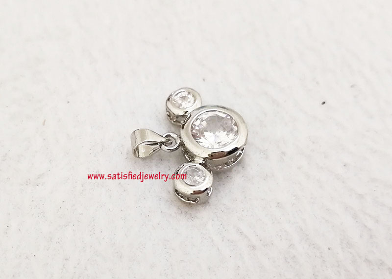 Material: Brass + Cubic Zircon Stone Color: Gold plated, Silver plated, Rhodium plated, Rose gold plated Size: Total size is 13.8x20.4mm, 5.1mm thickness, with 1 piece of 8mm cubic zircon round stone and 2pcs of 4mm cubic zircon round stone MOQ: 200pcs/color Delivery time: one week