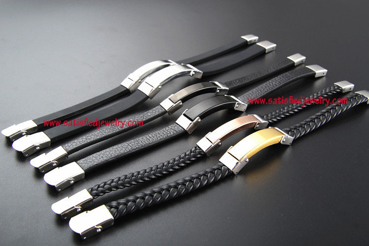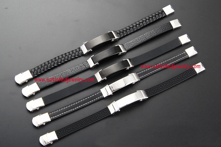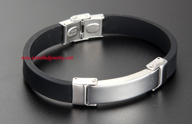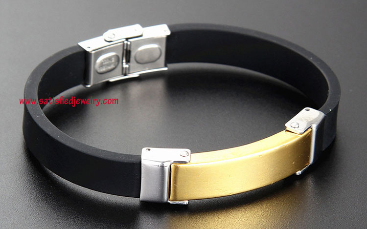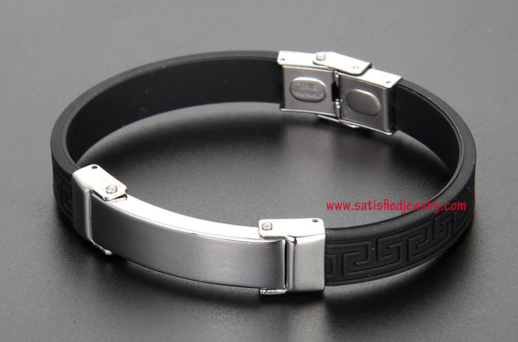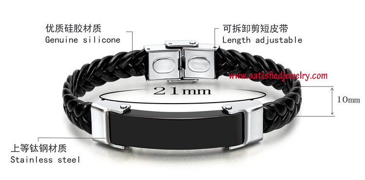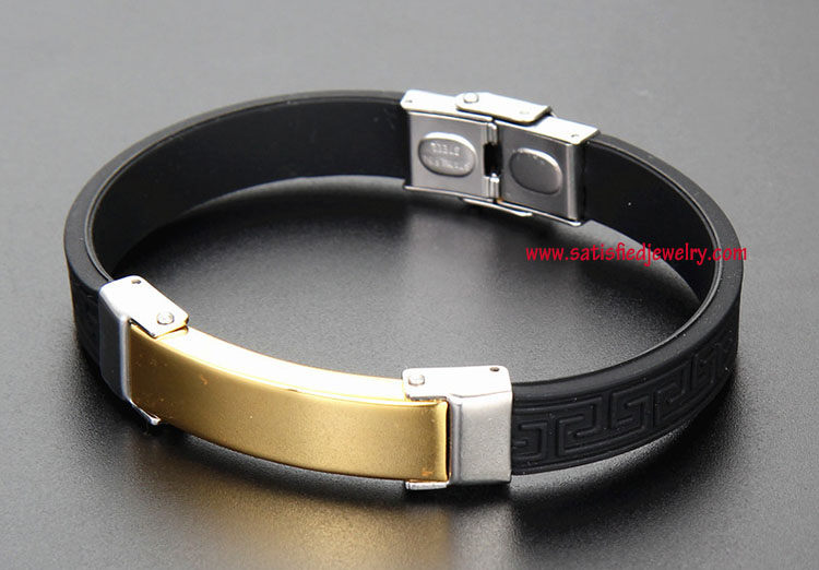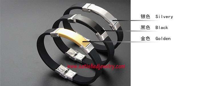 Material: Stainless steel + genuine silicone Color: black silicone + steel color / gold color / black color stainless steel part Size: perimeter is 21cm MOQ: 100pcs/color/design Delivery time: one week