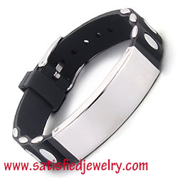 Material: Stainless steel + genuine silicone Color: red / yellow / green / black / light blue / dark blue / orange / plastic white / white / metal silver Size: Perimeter is 21cm (adjustable), width is 14mm MOQ: 100pcs/color Delivery time: one week