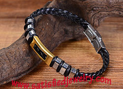 Material: Stainless steel + PU Leather Color: as show in the photo Size: length is about 21cm (adjustable) Weight: 18g MOQ: 100pcs/color Delivery time: one week