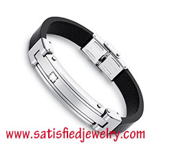 Material: Stainless steel + genuine silicone Color: as show in the photo Size: Perimeter is 21cm, 10mm width Weight: 20g MOQ: 100pcs/color Delivery time: one week