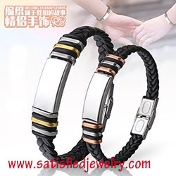 Material: Stainless steel + PU leather Color: brown belt or black belt / silver steel part or black steel part Size: Perimeter of woman design is 16cm, width is 10mm; Perimeter of man design is 18cm, width is 8mm MOQ: 100pcs/color Delivery time: one week