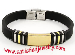 Material: Stainless steel + genuine silicone Color: BLACK / GOLD / SILVER Size: length is about 21cm, the silicone belt size is 10X3.5MM MOQ: 200pcs/color Delivery time: one week