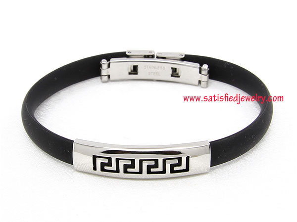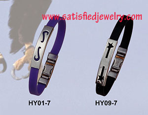 Material: Stainless steel + genuine silicone Color: 17designs with 20colors to choose Size: length is 20.5cm (22cm), width is 8mm, depth is 3.5mm, inside diameter is 5.6cm, the middle steel part size is 36X9MM, the inside hole size is 8x3mm MOQ: 100pcs / color / design Delivery time: one week