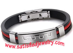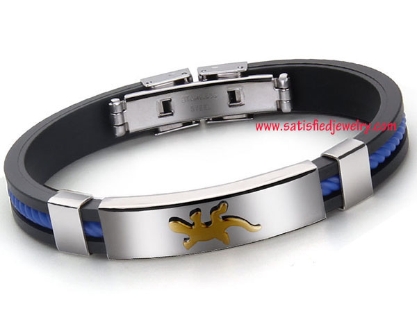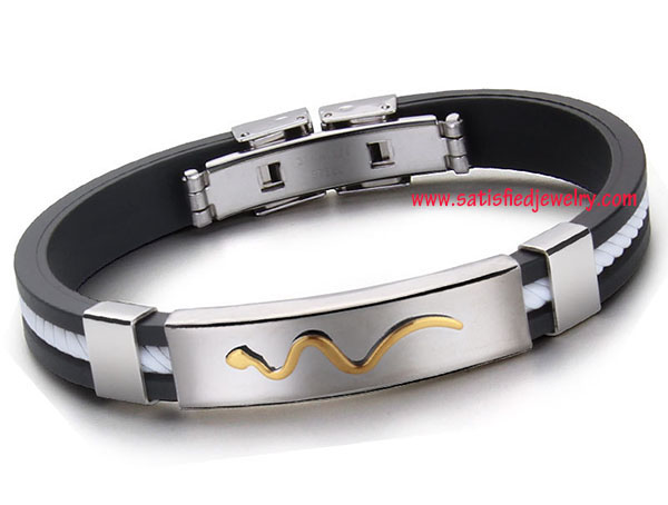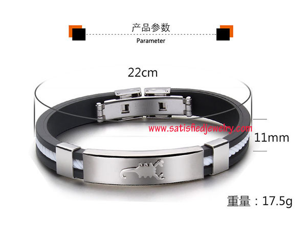 Material: Stainless steel + genuine silicone Color: middle design is gold / silver color Size: length is 22cm, width is 11mm MOQ: 100pcs/color / design Delivery time: one week