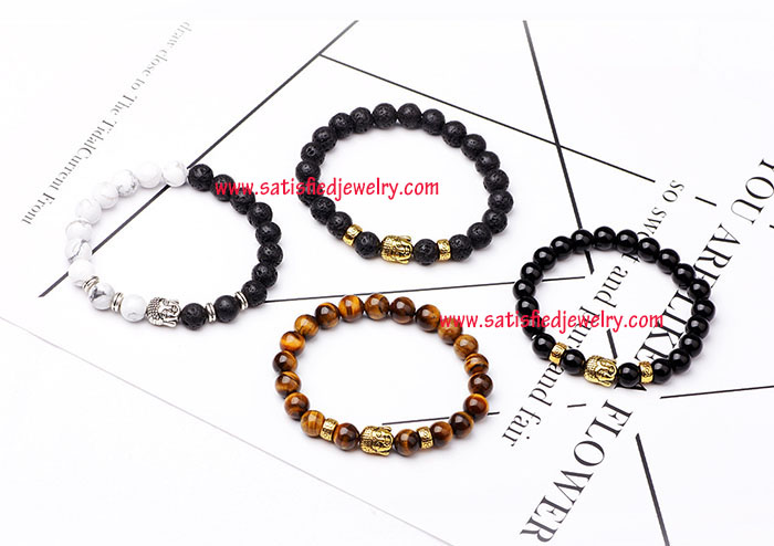 Material: Agate + lava + white turquoise + tiger eye + alloy parts Color: white turquoise / tiger eye / all lava / black agate Size: 8mm gemstone round beads Weight: 20g MOQ: 120pcs/color Delivery time: one week