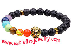 Material: lava +colored gemstone beads + Brass parts Color: one color - as show in the photo Size: 8mm gemstone beads, diameter is 6cm Weight: 20g MOQ: 120pcs/color Delivery time: one week