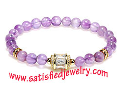Material: Amethyst + middle brass spacer with cubic zircon stone Color: one color as show in the photo Size: 7mm Amethyst round beads Weight: 14g MOQ: 120pcs/color Delivery time: one week