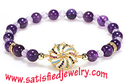 Material: Amethyst + middle brass spacer with cubic zircon stone Color: one color as show in the photo Size: 7mm + 4mm amethyst round beads Weight: 19g MOQ: 120pcs/color Delivery time: one week