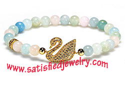 Material: Morganite + middle brass spacer with cubic zircon stone Color: one color as show in the photo Size: 6mm morgaite round beads Weight: 11g MOQ: 120pcs/color Delivery time: one week