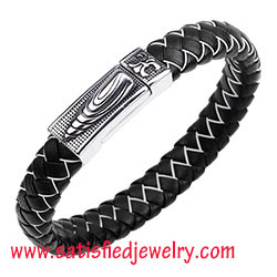 Material: Leather + alloy parts Color: all black / dark brown / light brown / red coffee / black with blue / black with white / black with white wave Size: length is 21cm, width is 1.3cm Weight: 39g MOQ: 120pcs/color Delivery time: one week