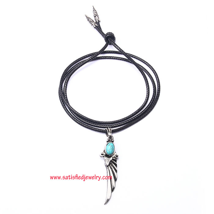 Material: Waxed rope + alloy parts Color: as show in the photo Size: Waxed rope perimeter is 99cm, the alloy pendant size is 8x2cm Weight: 26g MOQ: 120pcs/color Delivery time: one week
