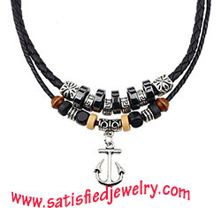 Material: Leather + alloy parts + hematite + wood beads Color: as show in the photo Size: length is 45cm Weight: 10g MOQ: 120pcs/color Delivery time: one week