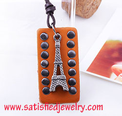 Material: leather + alloy parts Color: as show in the photo Size: Perimeter is 40-45cm, the pendant size is 5.5x4cm Weight: 26g MOQ: 120pcs/color Delivery time: one week