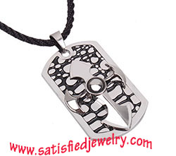 Material: Stainless steel + waxed rope Color: stainless steel color Size: length is 30cm, the pendant size is 5x3cm Weight: 24g MOQ: 120pcs/color Delivery time: one week