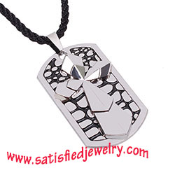 Material: Stainless steel + waxed rope Color: stainless steel color Size: length is 30cm, the pendant size is 5x3cm Weight: 24g MOQ: 120pcs/color Delivery time: one week