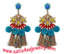 Material: Tassel + alloy parts Color: red / grey / colored Size: 7x11cm Weight: 42g MOQ: 120pairs/color Delivery time: one week