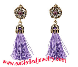 Material: Tassel + alloy parts Color: purple / light blue / dark blue / pink / fuchsia / brown / olive / cream Size: 1.3x5.8cm Weight: 6g MOQ: 120pairs/color Delivery time: one week